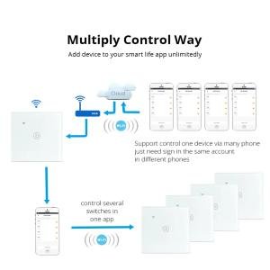 1-Gang Smart WiFi Touch Wall Switch – Tempered Glass, Tuya/Smart Life App Control, Alexa & Google Home Compatible, 3x3 Standard Fitting