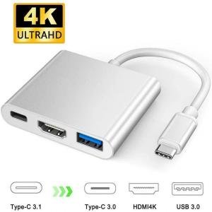 3-in-1 USB-C to 4K HDMI Hub Adapter – USB 3.0 Port, Type-C PD Charging, 4K UHD Video Output, Gold-Plated Connectors, Triple Shielded