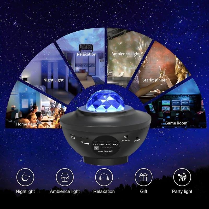 21 Mesmerizing Projection Modes: Combine 10 solid colors with laser-star effects to create 21 different atmospheres. From a peaceful deep-blue ocean to a vibrant purple nebula, the choice is yours via the wireless remote.