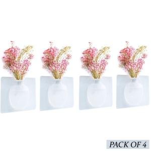 4-Piece Sticky Silicone Wall Mounted Flower Vase – Reusable Magic Plant Holder, No-Drill Suction Vase for Glass, Tiles & Mirrors, Modern Decorative Display for Air Plants & Herbs