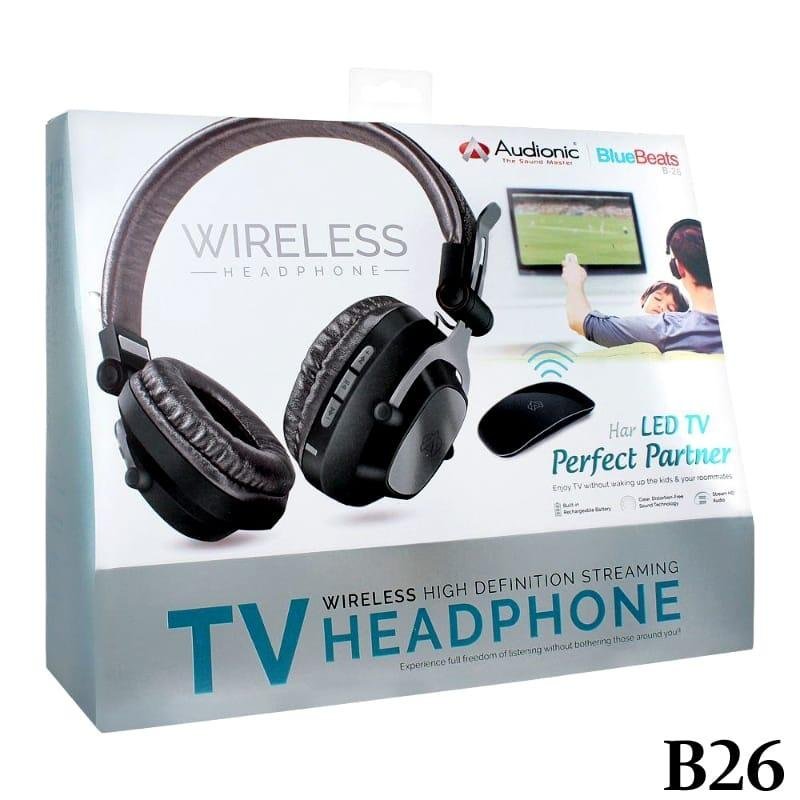 Audionic B26 BlueBeats Over-Ear Wireless Headphones – HD Sound for TV & Music with Wireless Transmitter