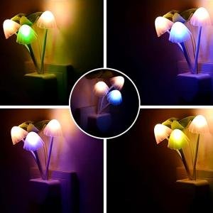 Automatic LED Mushroom Night Light – Color-Changing Sensor Lamp, Dusk-to-Dawn Auto On/Off, Plug-in Whimsical Decor for Nursery, Kids Room & Hallways