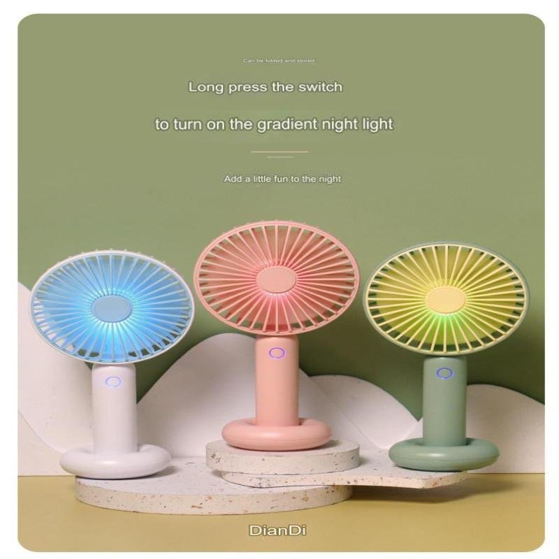 BD 5626 Mini Portable Rechargeable Fan – Handheld & Desktop 2-in-1, 1200mAh Battery, 3-Speed Adjustable Wind with Illuminated Ring Light & Folding Base