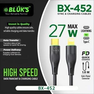 BLUK’S BX-452 Lightning to Type-C Cable – 27W PD Fast Charge & Gold-Plated Sync – 2026 Gold-Link Series