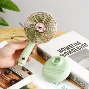 Compact Mini Portable USB Rechargeable Handheld Fan – Adjustable Angle, 3-Speed Control, Built-in Phone Holder Base, 800mAh Battery, Ultra-Quiet 36dB