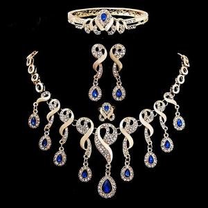 Elegant 4-Piece African Bridal Jewelry Set – Gold-Plated Austrian CZ Crystal Necklace, Drop Earrings, Bracelet & Ring with Water-Drop Tassel Design