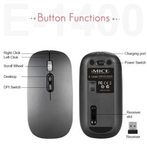 iMICE E-1400 Rechargeable Dual-Mode Wireless Mouse – Silent Clicking, 1600 DPI, 2.4GHz & Bluetooth Connectivity