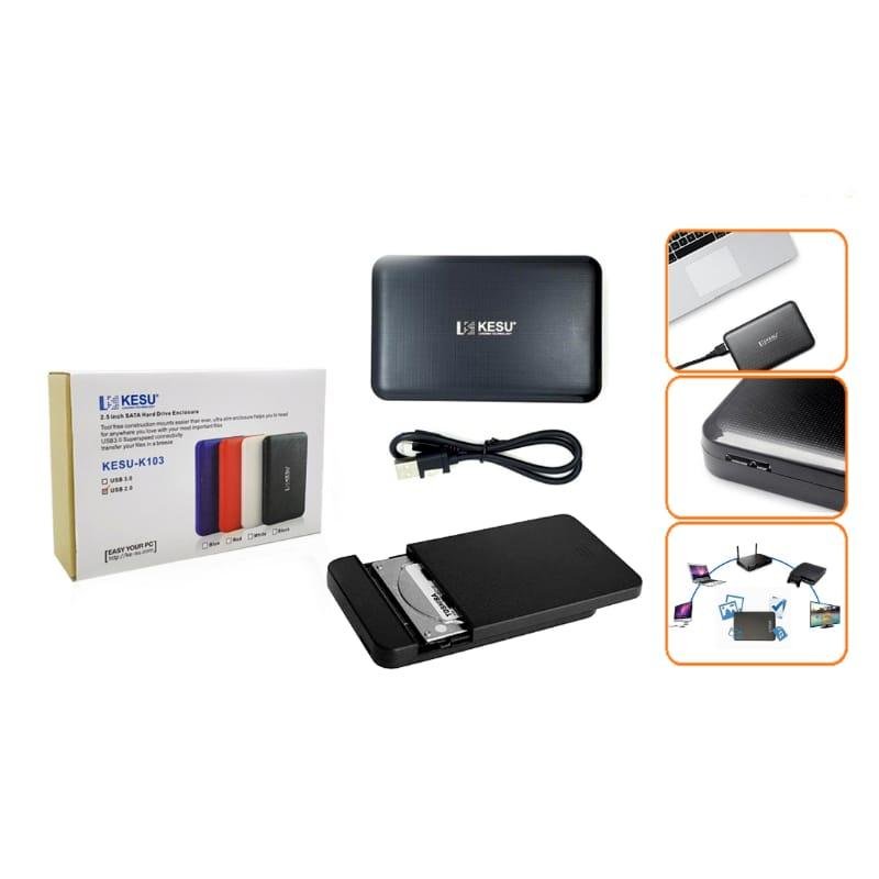 KESU-K103 2.5" SATA to USB 3.0 HDD/SSD Enclosure – 5Gbps SuperSpeed, Tool-Free Design, Ultra-Slim External Casing for Laptop Hard Drives