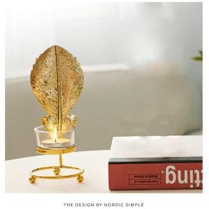 Nordic Gold Leaf Metal Candlestick Holder – Geometric Wrought Iron Candle Stand, Electroplated Aroma Ornament, Luxury Dining Table Decor, Rust-Resistant Wedding Centerpiece