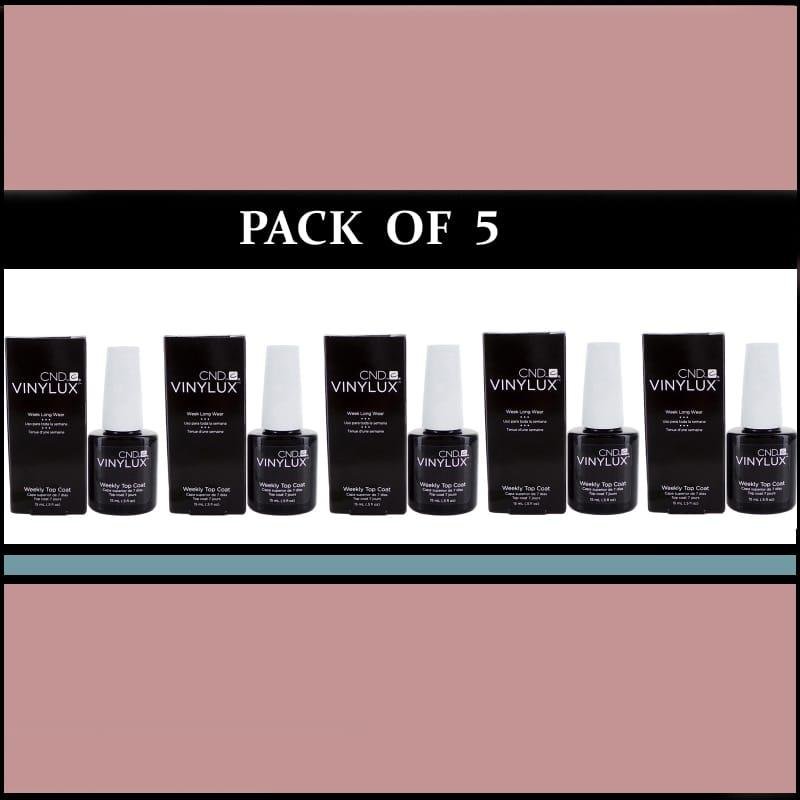 Pack of 5 CND Vinylux Weekly Top Coat – Long-Lasting 7-Day Wear, ProLight Technology for Chip Resistance, High-Gloss Shine, 7.3ml Professional Size