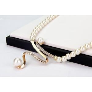 Radiant Pearl Wave Necklace & Earring Set – Gold-Tone Bridal & Prom Jewelry with Crystal Rhinestones, S-Curve Wave Design