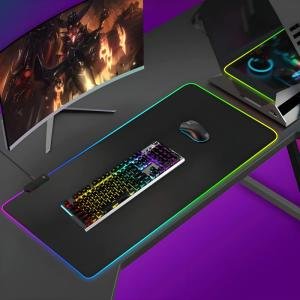 RGB-01 XL Luminous Gaming Mousepad – 14-Color LED Backlit, Soft Microfiber Surface, 800x300mm Extended Size for Keyboard & Mouse