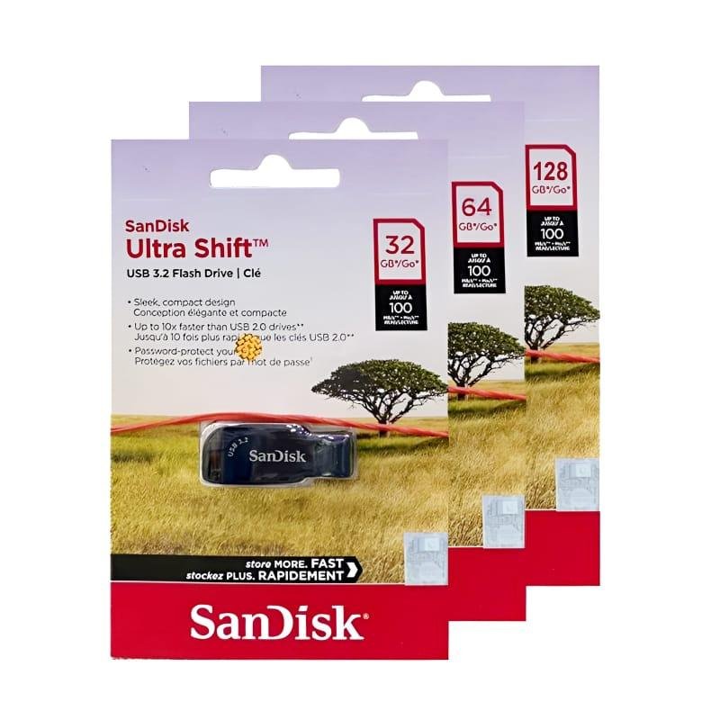 SanDisk Ultra Shift USB 3.2 Flash Drive – 32GB/64GB/128GB, 100MB/s High-Speed Transfer, Capless Design with SecureAccess™ Encryption