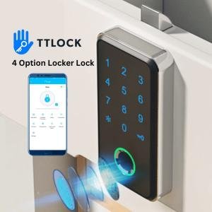 Smart RFID & Fingerprint Locker Lock – 4-in-1 Unlock (TTLock App, Biometric, PIN, MiFare Card), Tempered Glass Touchpad, USB Emergency Power, for Gym, Pool & School Lockers