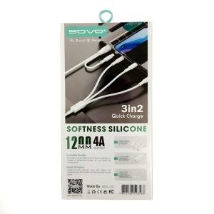 SOVO SC-501 45W 3-in-2 PD Fast Charging Cable – Soft Silicone & Tangle-Free – 2026 Flex-Power Series