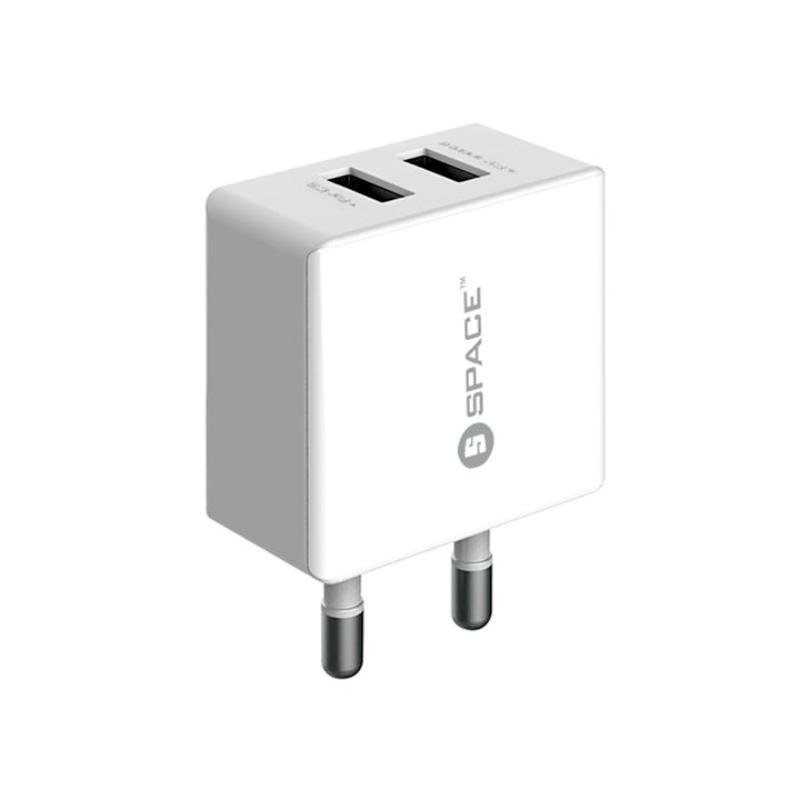 SPACE Dual USB Wall Charger ShopwithSIA 2.4A Micro USB White