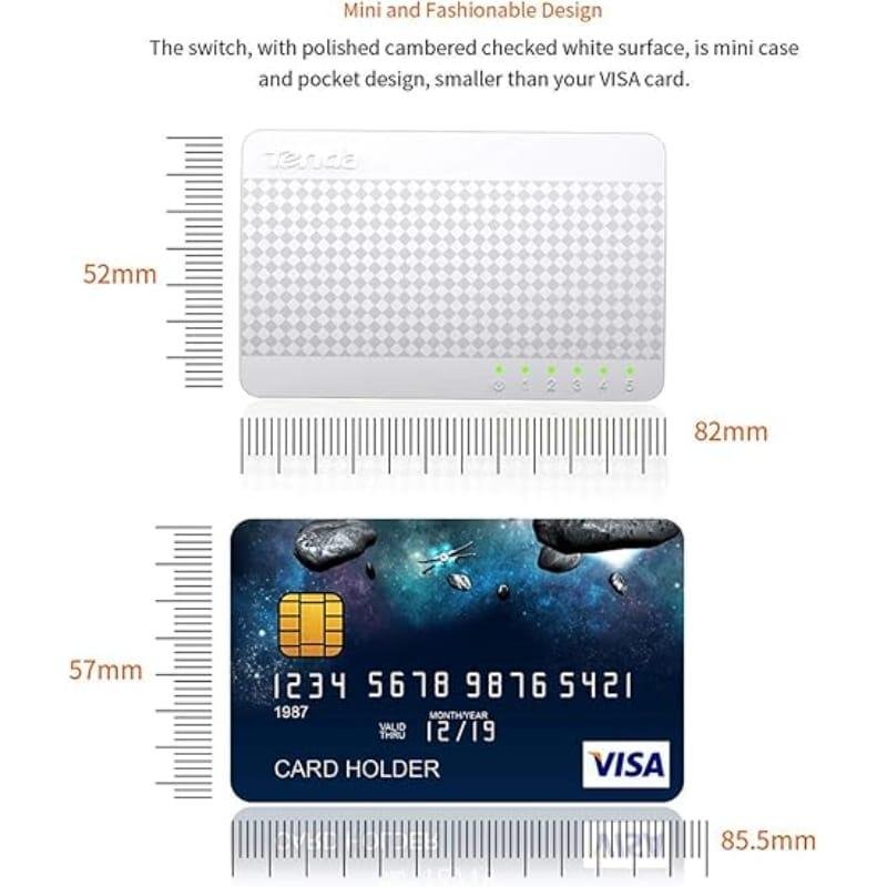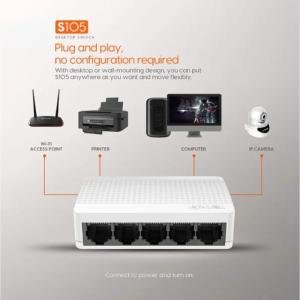 Tenda S105 5-Port 10/100Mbps Ethernet Switch – Unmanaged Desktop Splitter, Mini Hub for Home/Office, Low Power Consumption, Wall Mountable, Plug & Play Setup