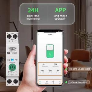 Tomzn TOB9-VAP 63A Smart WiFi Circuit Breaker – 1P+N Protection Relay, Energy Monitoring Meter, Over/Under Voltage Protector, Timer Switch for Smart Homes