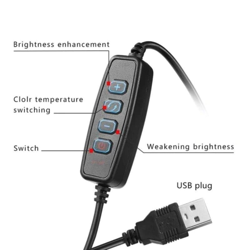 Achieve the perfect glow for every video with the USB Studio Fill-in Light Ring. This 26cm ring light is designed for versatility, easily mounting to any standard tripod or desk stand via its universal 1/4" screw hole.
