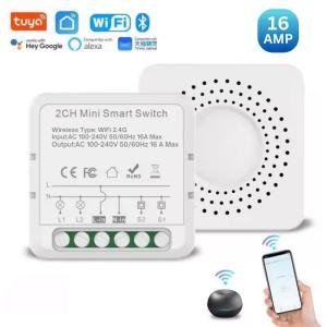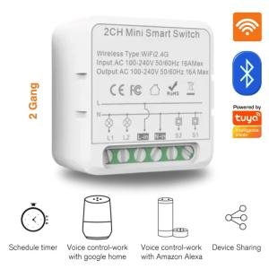 2-Gang WiFi Mini Smart Relay Module – 16A High Load – Tuya & Smart Life Compatible, Bluetooth + WiFi Dual Mode, 2-Way Physical Switch Support, Voice Control (Alexa/Google Home)