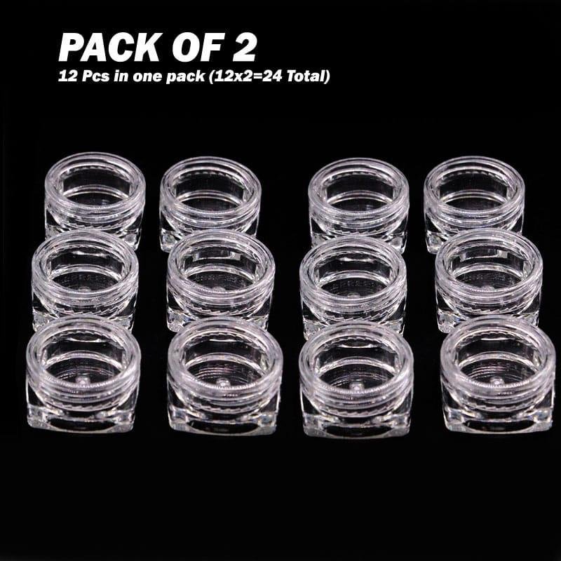 24-Piece Small Round Plastic Storage Jar Set – Clear 3g Cosmetic Sample Pots for Beads, Glitter, Lip Balms & Nail Art