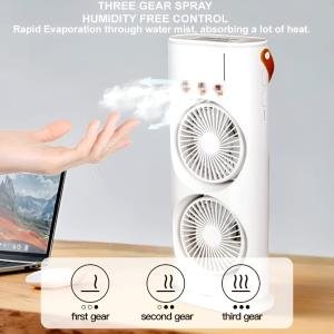 The 3-in-1 Dual Head Spray Cooling Fan represents the next generation of portable climate tech, offering a more powerful alternative to single-blade desktop fans.