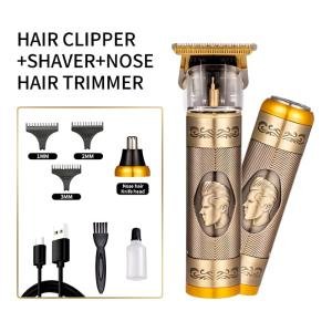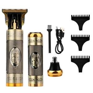 3-In-1 Vintage Professional Grooming Set – USB Rechargeable Hair Clipper, Shaver & Nose Trimmer, Stainless Steel Acute-Angle Blades, Copper Finish for Men