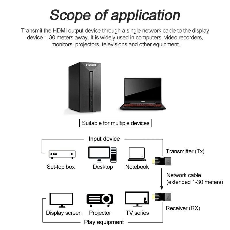 30M HDMI to RJ45 Network Cable Extender – 4K Ultra HD & 1080P Over Cat5e/Cat6 Ethernet