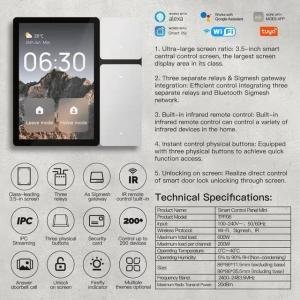 3.5" Smart WiFi Mini Control Panel with Built-in IR Remote – Bluetooth Sigmesh Gateway, 3-Gang Physical Buttons, Live Camera View, Tuya/Smart Life App Control