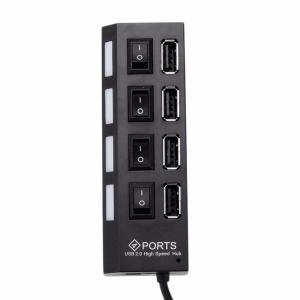 4-Port USB 2.0 High-Speed Expansion Hub – Individual On/Off Power Switches, LED Indicators, Over-Current Protection, Plug & Play