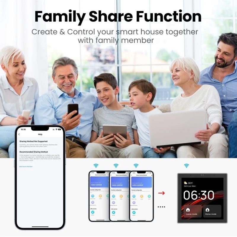 It features an automatic light sensor that adjusts screen brightness based on the room's environment. One-Touch Scene Control: Pre-program your favorite settings. Tap "Movie Night" to dim the lights and close the curtains simultaneously, or "Away Mode" to turn off all appliances and arm your security system.