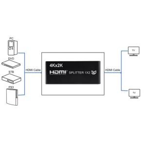 The 4K x 2K HDMI Splitter 1x2 is the perfect solution for anyone needing to distribute a single high-definition signal to two displays at once. Whether you are setting up a home theater, a gaming station, or a professional conference room, this splitter ensures both screens receive the exact same high-quality image. It supports HDMI 1.4b and resolutions up to 3840 x 2160 @ 30Hz, delivering breathtaking clarity and vibrant Deep Color (8/10/12 bit).