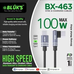 BLUK’S BX-463 100W Type-C to Type-C Elbow Cable – 90° Braided Fast Charge & 4K Video – 2026 Titan-Link Series