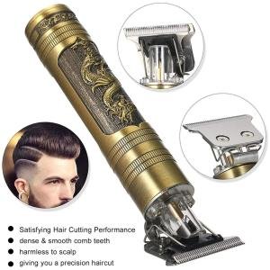 Bronze Thread Engraving Hair Trimmer for Men – Professional USB Rechargeable Barber Clipper, Carbon Steel T-Blade, 0mm Zero-Gapped Detailer with 4 Guide Combs