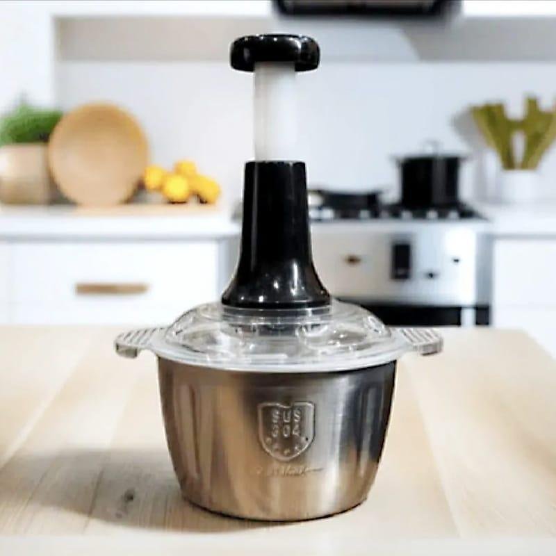 Quad-Blade Hand-Push Technology: Equipped with 4 curved blades stacked at different heights, this chopper creates a "cyclone effect." With every push, the blades slice through ingredients at multiple levels, ensuring a uniform chop without turning your veggies into mush.