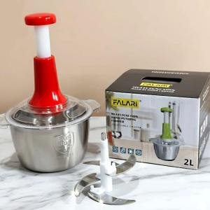 Falari 2L Stainless Steel Manual Food Chopper – 4-Blade Hand-Push Processor, SUS 304 Food-Grade – 2026 Energy-Saver Series