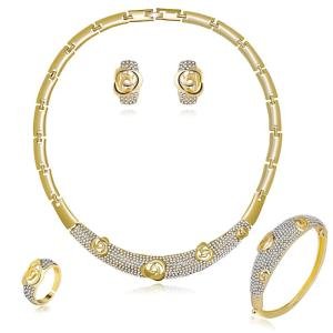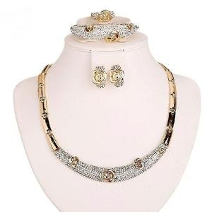 Luxury 18K Gold-Plated African Rose Jewelry Set – 4-Piece Dubai Style Bridal Collection: Choker, Bangle, Earrings & Adjustable Ring