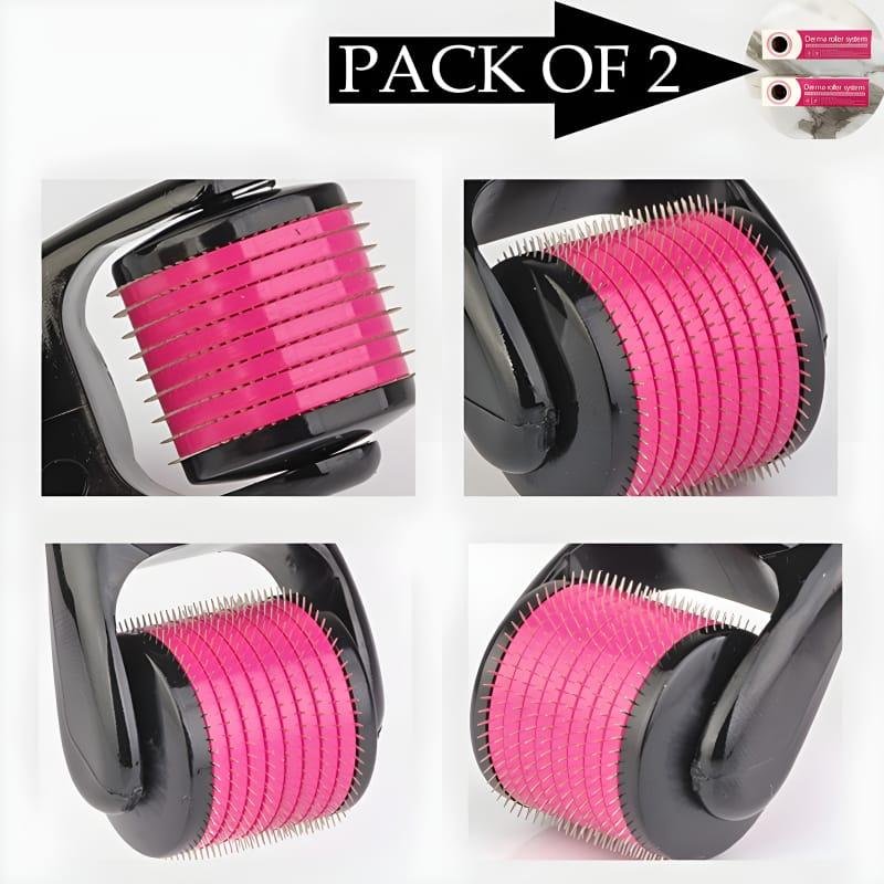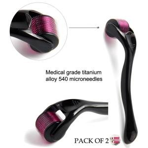 Pack of 2 Professional 0.5mm Microneedle Derma Rollers – 540 Titanium/Stainless Steel Needles for Face, Neck & Scalp, Collagen Stimulating Anti-Aging Skin Care Set
