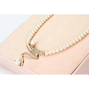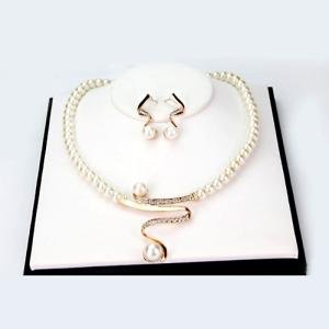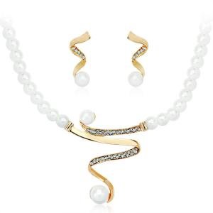 Radiant Pearl Wave Necklace & Earring Set – Gold-Tone Bridal & Prom Jewelry with Crystal Rhinestones, S-Curve Wave Design