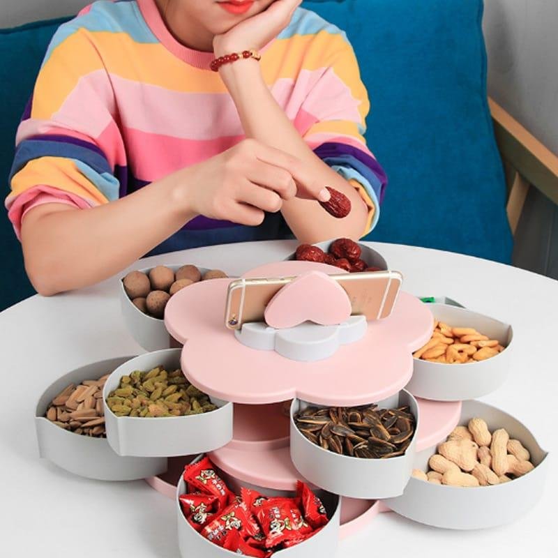 Flower Design Rotating Candy Box – Double-Layer 5-Grid Snack & Dry Fruit Tray – 2026 Festive Hosting Edition