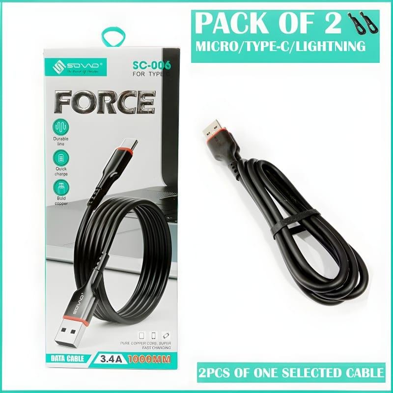 2-Pack SOVO SC-006 Force Series Data Cables – 3.4A Fast Charging & Bold Copper Core – 2026 Power-Force Series