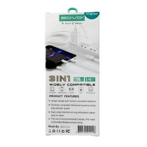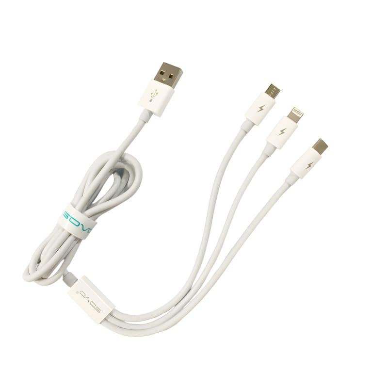 SOVO SC-301 3-in-1 Fast Charging Cable – 3.4A High-Current Triple Lead (Lightning, Type-C, Micro) – 2026 Multi-Sync Series