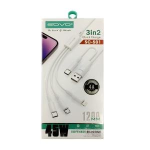 SOVO SC-501 45W 3-in-2 PD Fast Charging Cable – Soft Silicone & Tangle-Free – 2026 Flex-Power Series