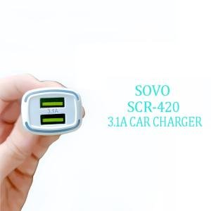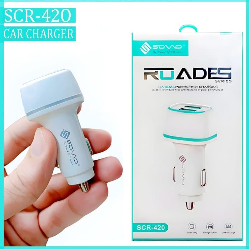 SOVO SCR-420 ROADES Dual-Port 3.1A Fast Car Charger – Includes Charging Cable (Type-C, Lightning, or Micro) – 2026 Road-Master Edition