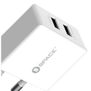 SPACE Dual USB Wall Charger ShopwithSIA 2.4A Micro USB White