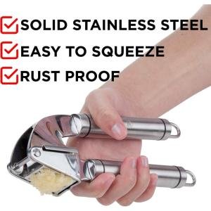 It provides the mechanical advantage needed to crush through the toughest ginger or garlic, delivering a fine paste every time. Superior Stainless Steel Construction: Built from 100% food-grade SS Steel, this press is designed to withstand the high pressure of daily use without bending or snapping. Unlike plastic or aluminum versions, it is rust-proof and won't react with the acidic nature of garlic.