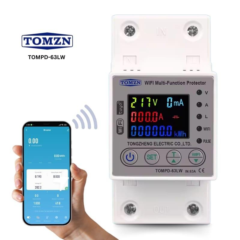Tomzn TOMPD-63LW 10-in-1 WiFi Smart Circuit Breaker – 63A Dual Line Cutoff (L+N), Earth Leakage Protector, Real-Time kWh Meter, Tuya/Smart Life App, Voltage & Overload Shield