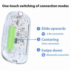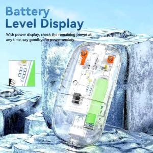 Transparent Dual-Mode Wireless Mouse – Bluetooth 5.2 + 2.4G Wireless, Silent Click, 3-Level DPI & Real-Time Battery Display