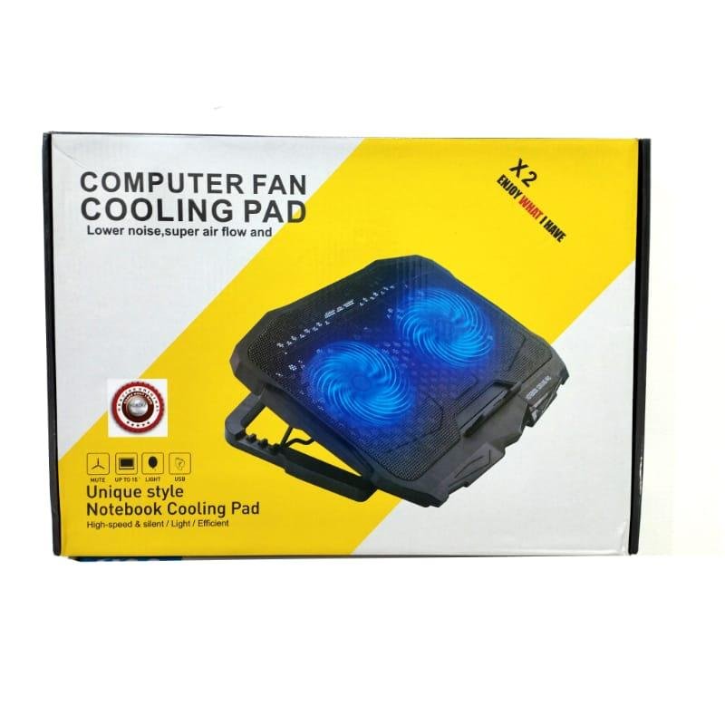 X2 Super Air Flow Laptop Cooling Pad – Dual 14cm Ultra-Quiet Fans, RGB Ice Lighting & Ergonomic Stand